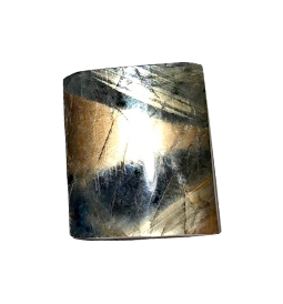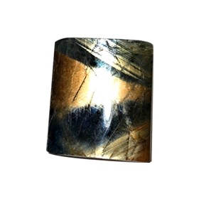ゴールドシーンサファイアは【ヘマタイト(極微細で短い針状の赤鉄鉱)】を含み、これが強い金色のシーンを生む原因物質となっています。金色の光沢効果(ゴールドシーン)は、この極微細な短い針状物質に光が反射するイリデッセンス効果によって生まれます。